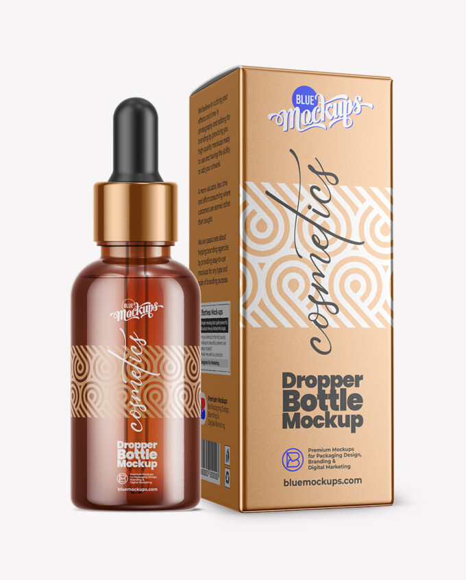 Dropper Bottle with Paper Box Mockup | Amber